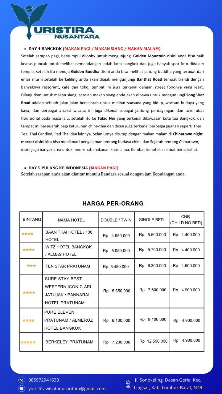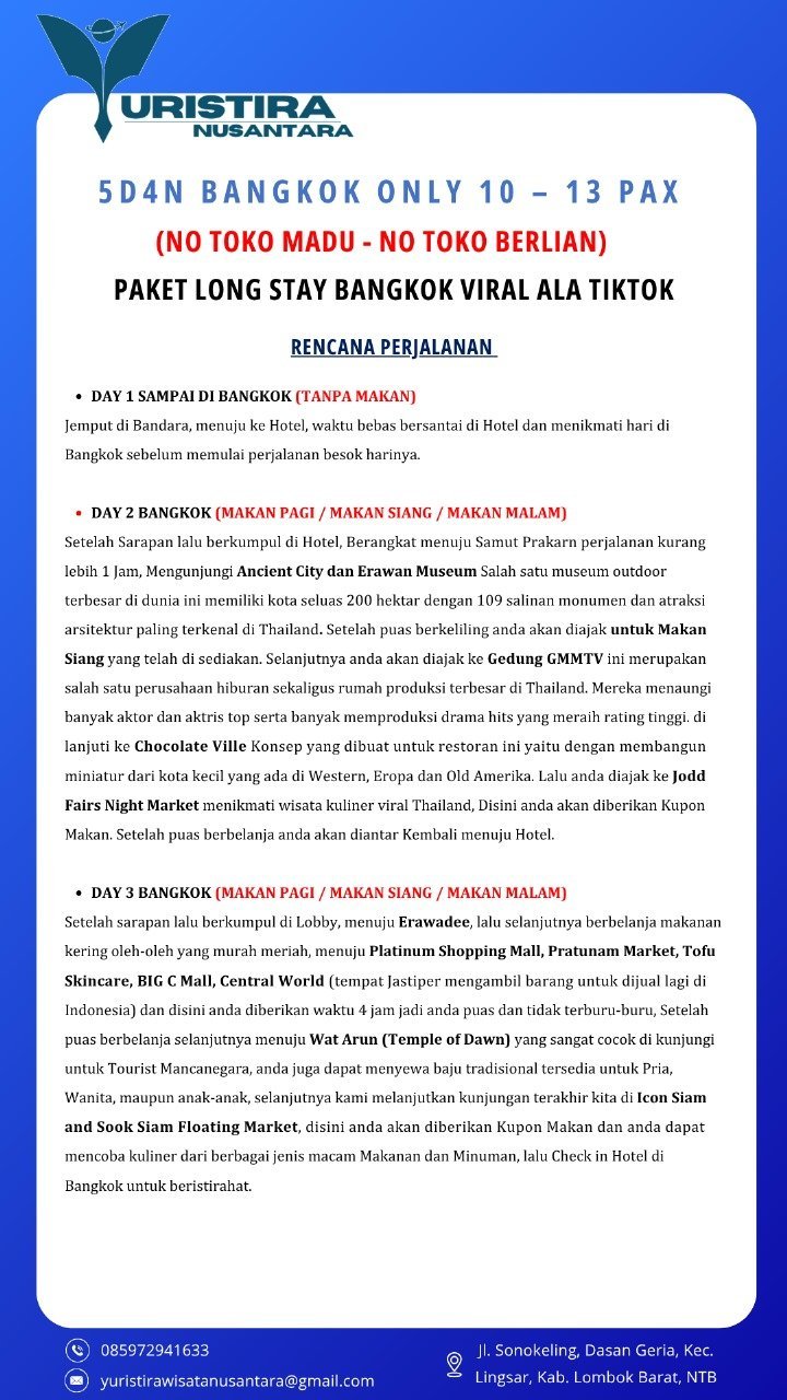 Bangkok Only 5D4N (10 – 13 Pax)